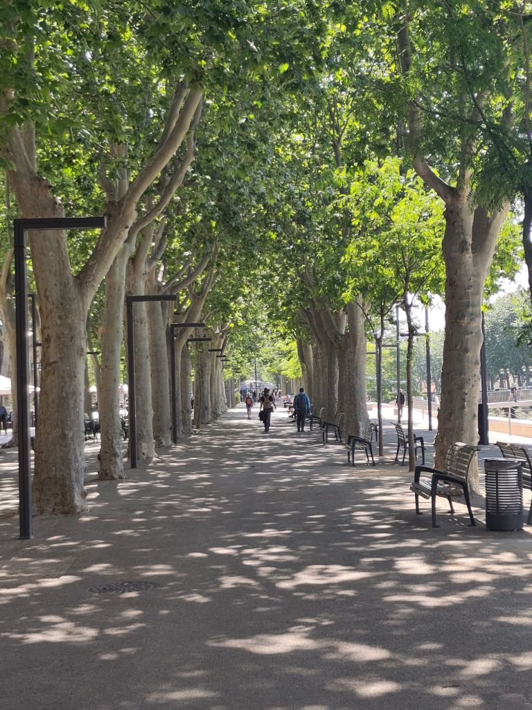 Ein krasser Gegensatz zum Trubel in Zaragossa. Im Vergleich ist es hier äußerst ruhig. Bisher ist es der hübscheste Ort. Besonders schön sind die vielen Platanenalleen.