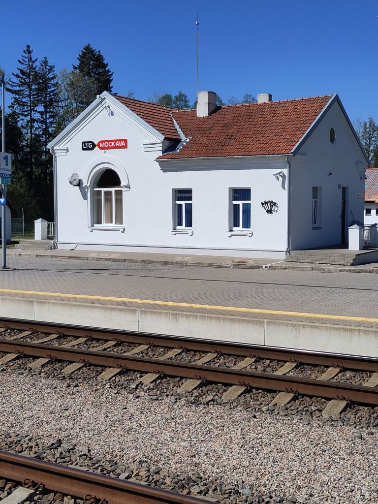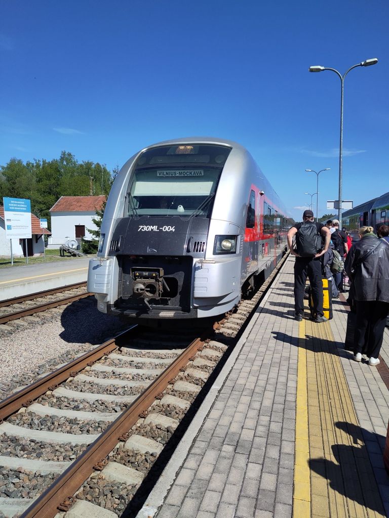 In Mockava trifft nach kurzer Wartezeit der Zug nach Kaunas/Vilnius ein. Hier erfolgt der Wechsel von der Standard-Spurweite zur russischen Spurweite.